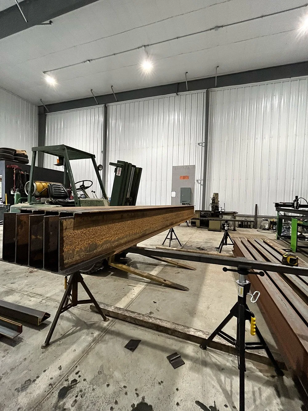 We cut, move, and weld structural beams, support frames, and stair systems in-shop and on-site. Experience with both residential and commercial steel builds.